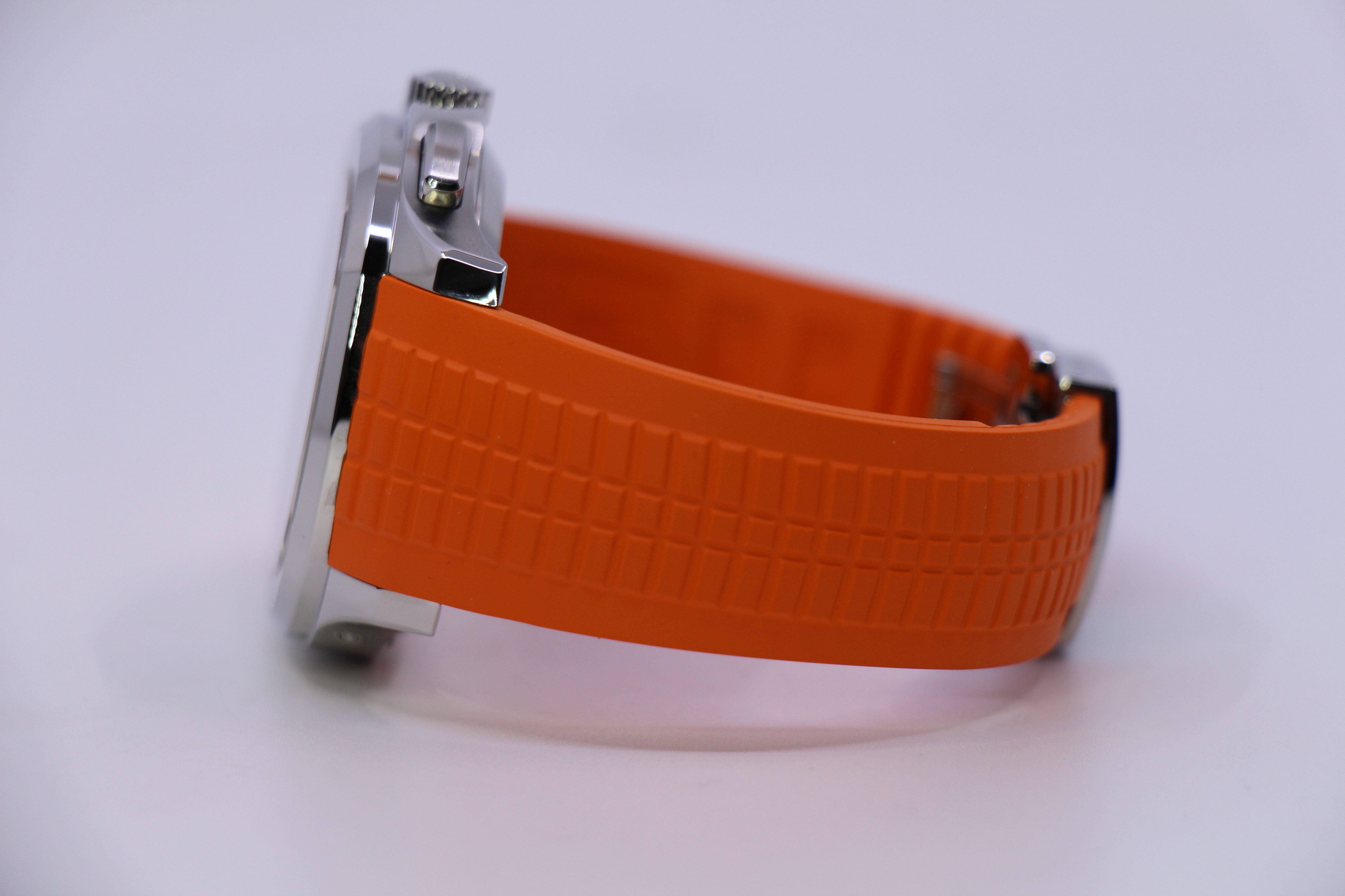 Den sorte Aquanaut-skive med præget mønster giver et råt og teknisk udtryk, mens de orange detaljer på kronografviseren tilfører et sporty twist, der tydeligt adskiller 5968A-001 fra de mere klassiske Patek-modeller. Uret leveres på den matchende sorte “Tropical” rem, som sikrer høj komfort og et moderne look.