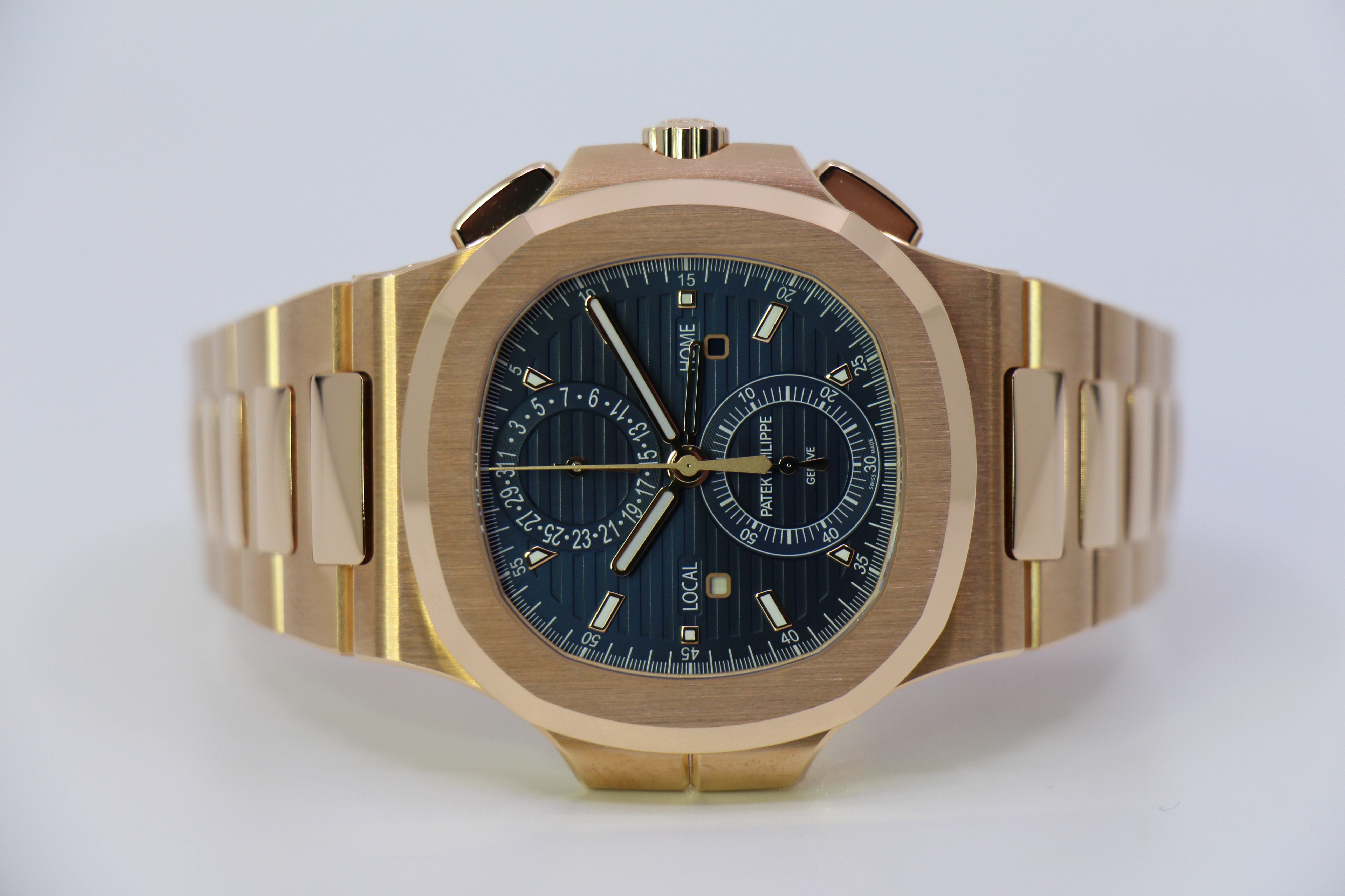 Dette Nautilus forener tre eftertragtede komplikationer: en selvoptrækkende flyback-kronograf, en intuitiv Travel Time-funktion med dobbelt tidszone samt en datovisning, der følger lokal tid.