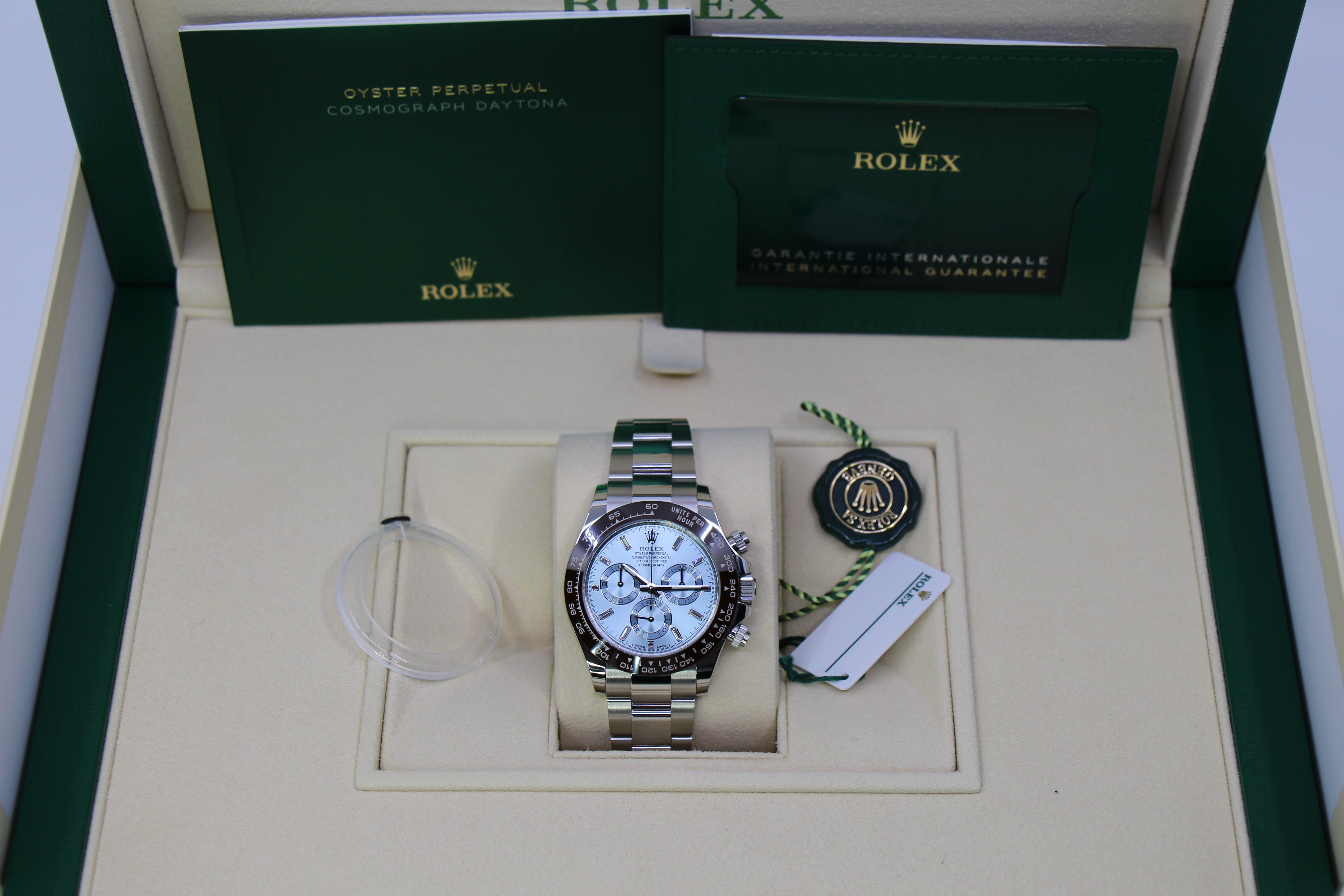 Rolex Cosmograph Daytona, ref. 116506 “Baguette” fra oktober 2022. Uret har derfor Rolex garanti verden over til oktober 2027. Uret er i meget flot stand.
