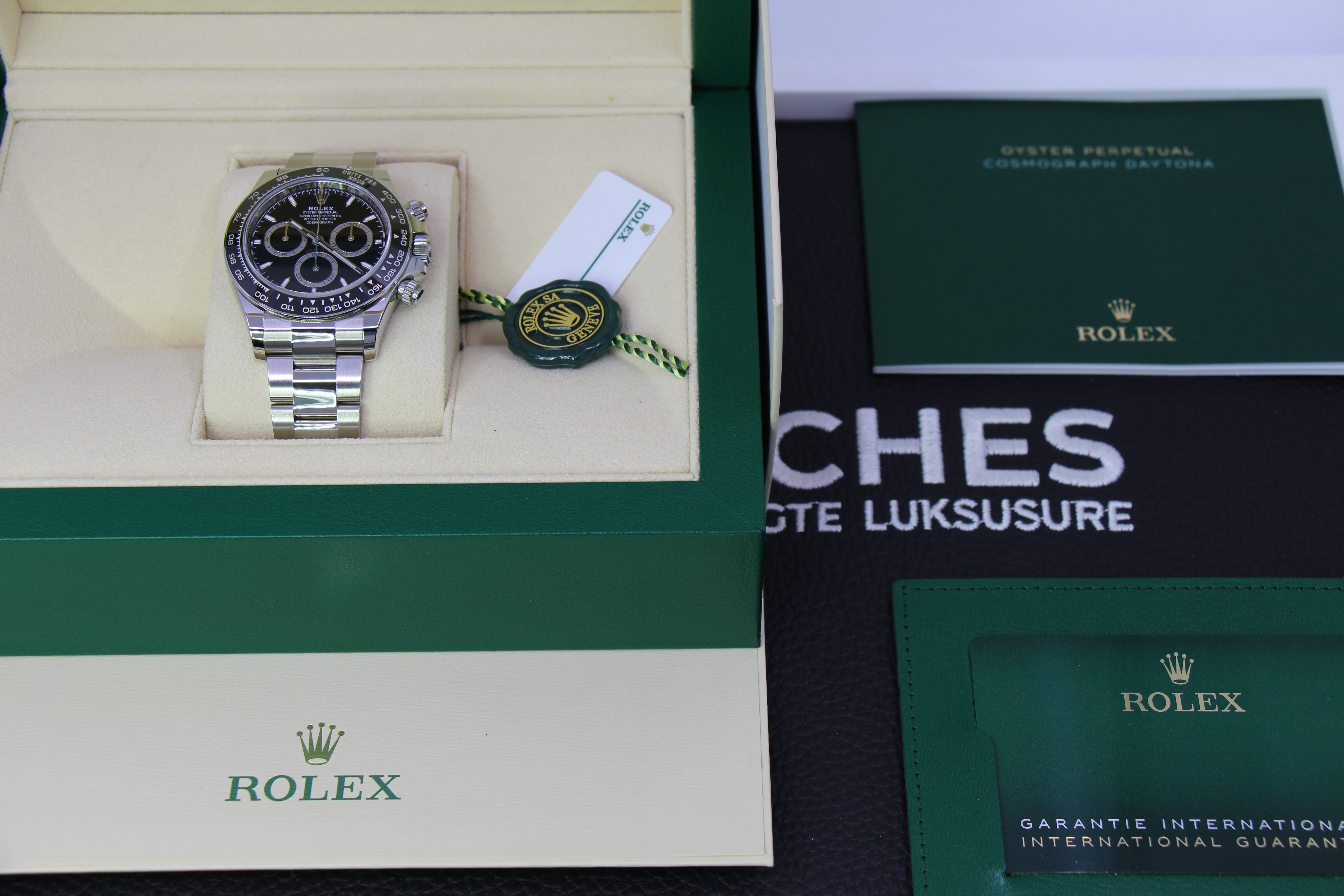 Rolex Cosmograph Daytona, ref. 126500LN fra august 2024. Uret har derfor Rolex Garanti verden over til august 2029. Uret er fabriksnyt.
