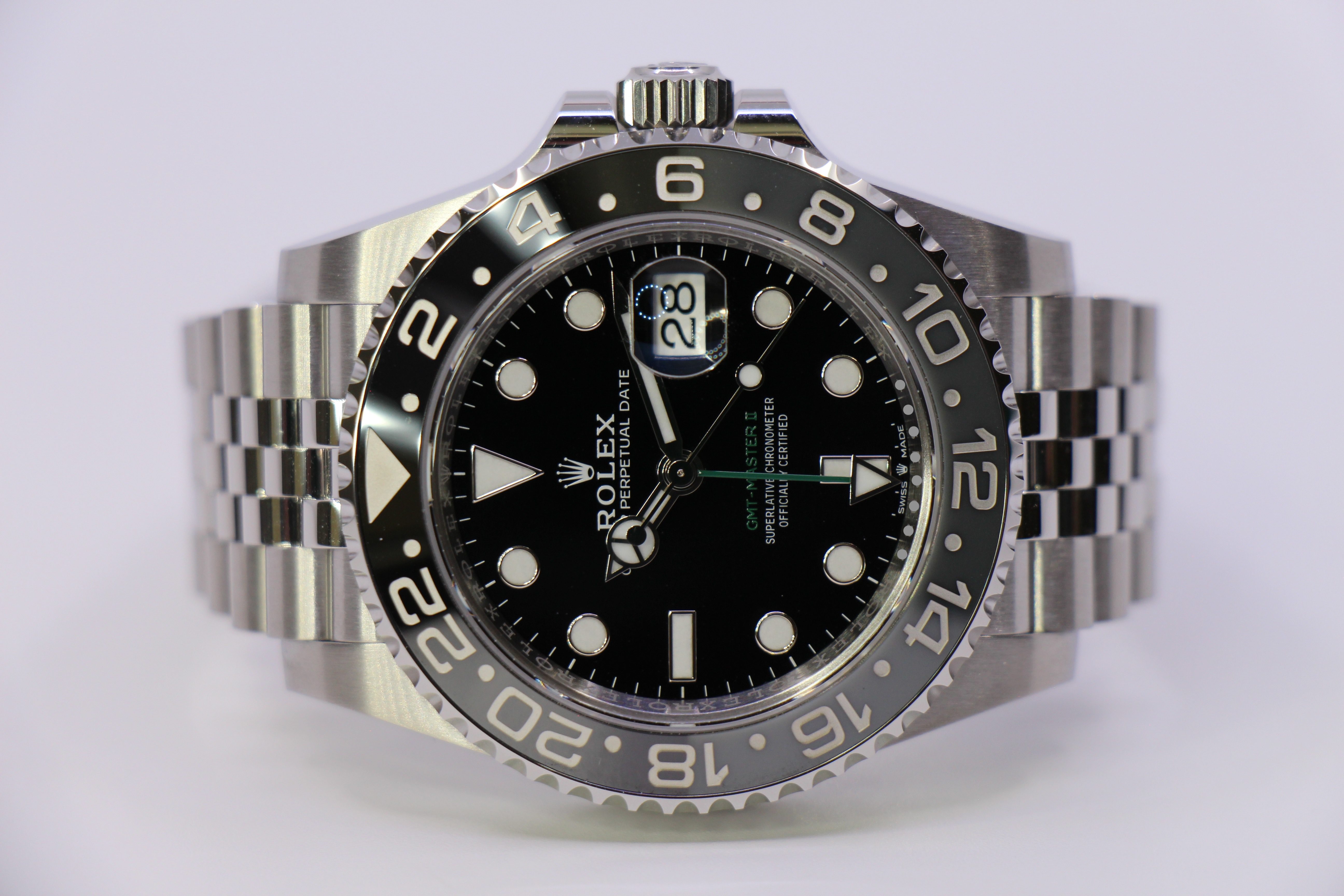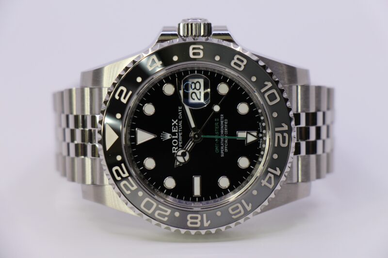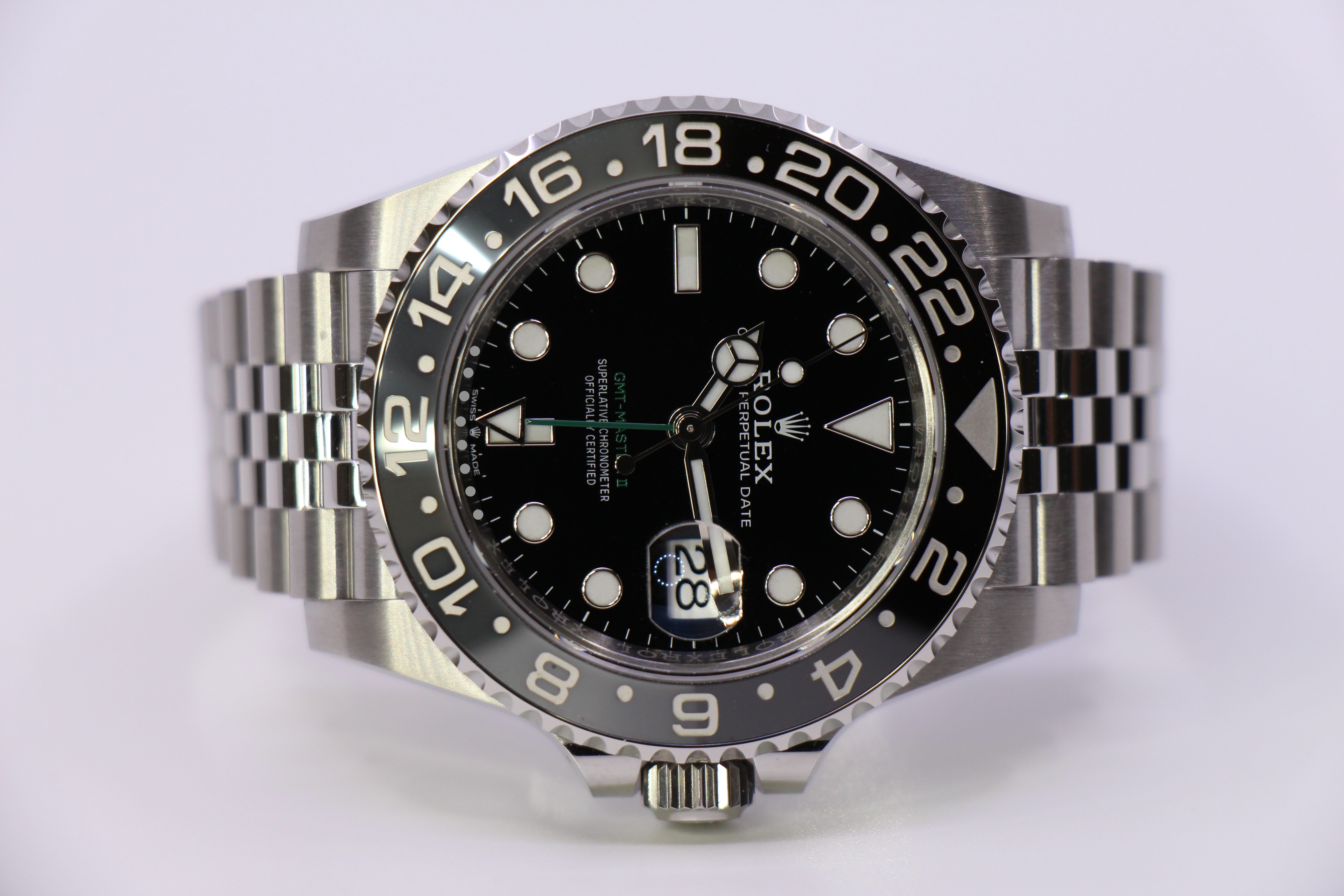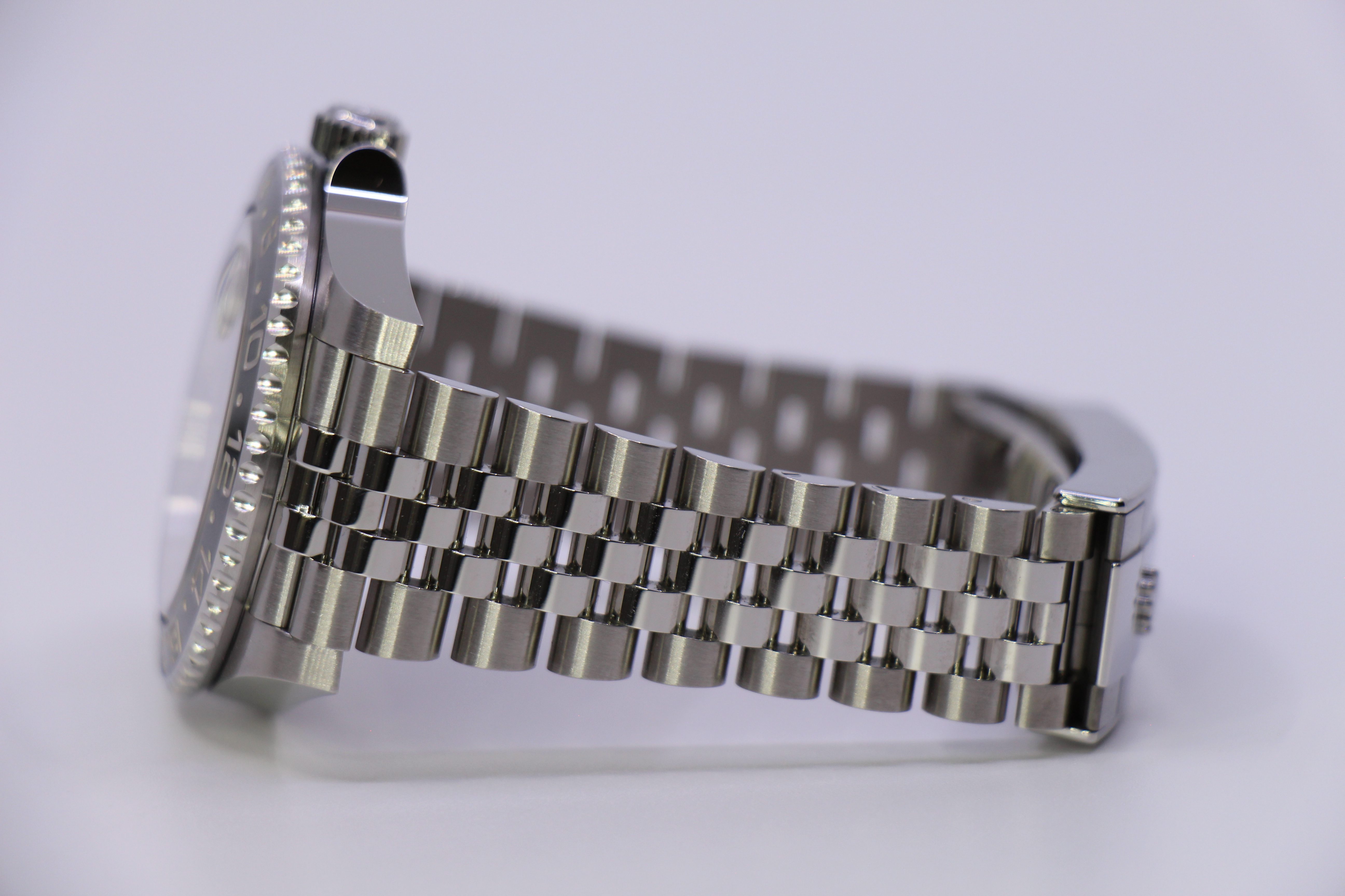 Den nyeste version af GMT – Master II som blev lanceret i 2024. Uret er monteret på jubilee lænke med keramisk insert i grå og sort.