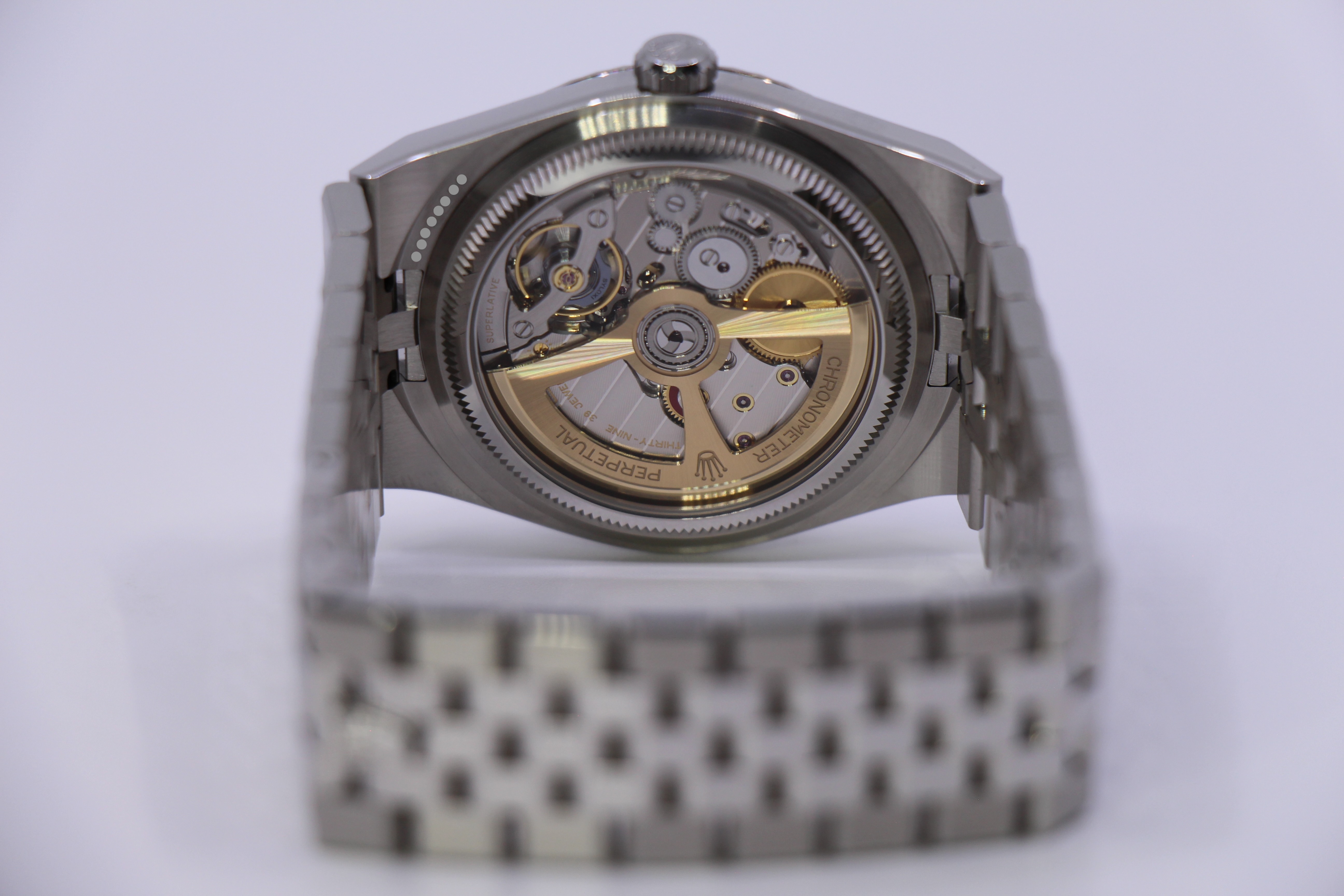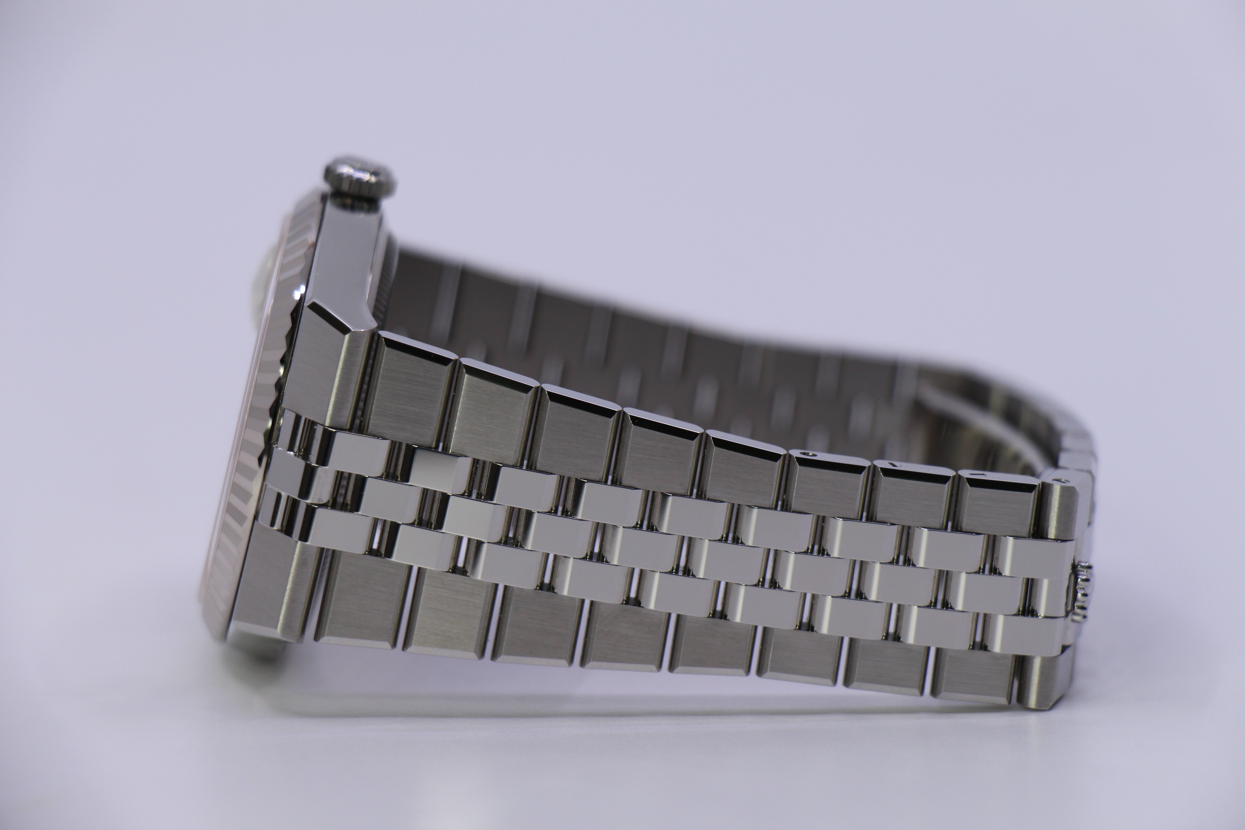 Den nyest lanceret model fra Rolex på Watches & Wonders i 2025. Uret kommer på en ny flat jubilee lænke, og en flot hvid skive med motiv.