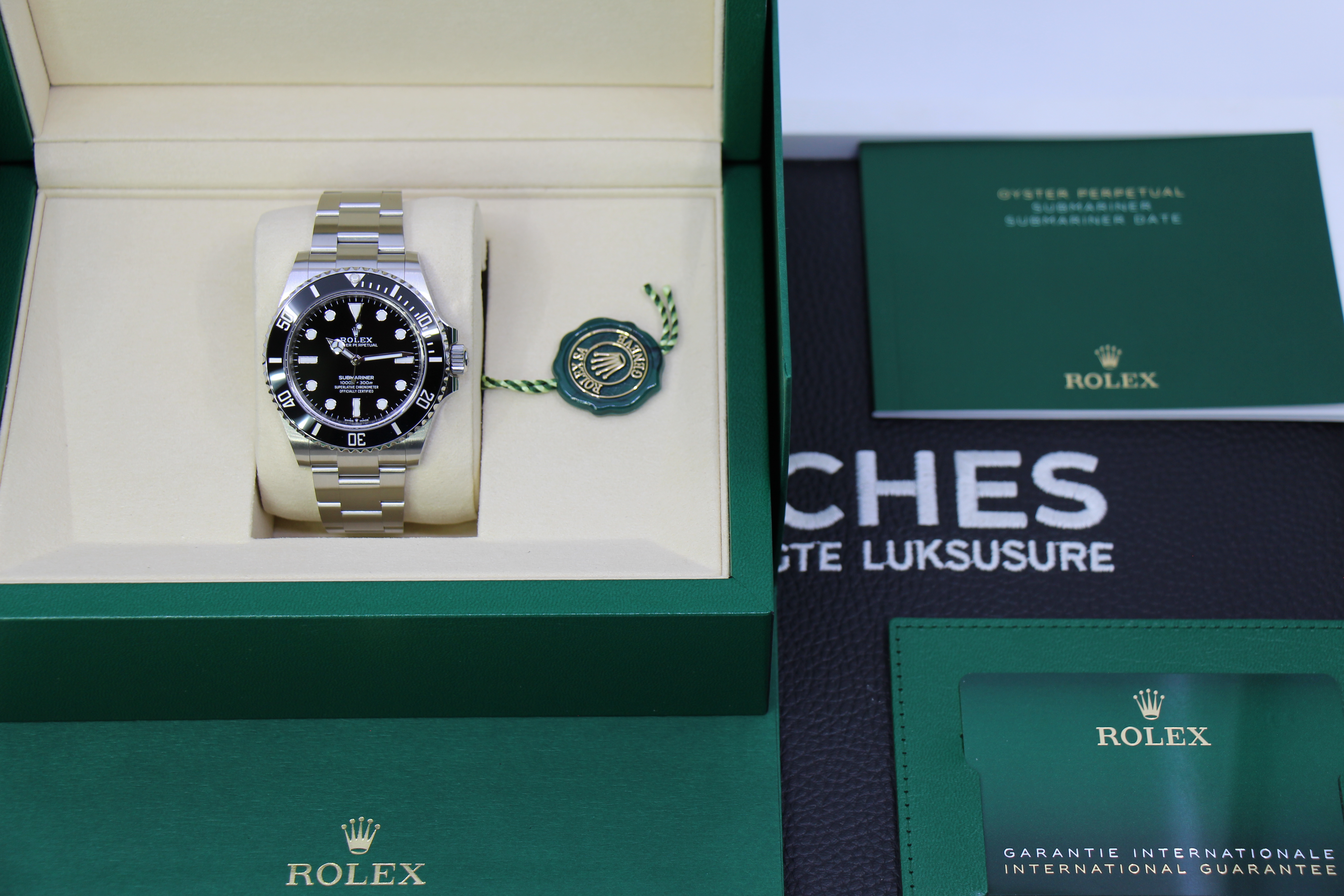 Rolex Submariner, ref. 124060 fra juli 2025. Uret har derfor Rolex garanti verden over til juli 2030. Uret er fabriksnyt.