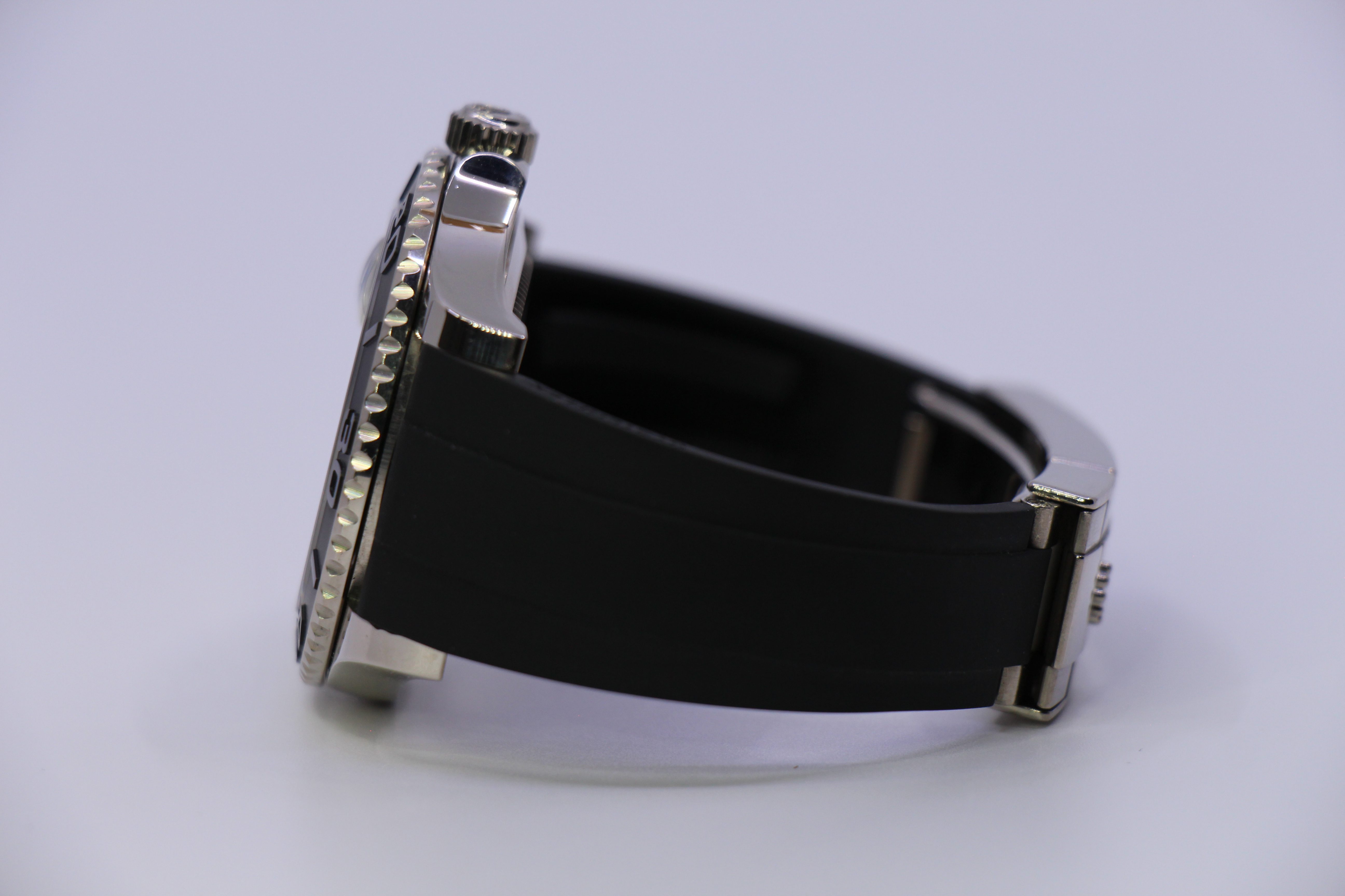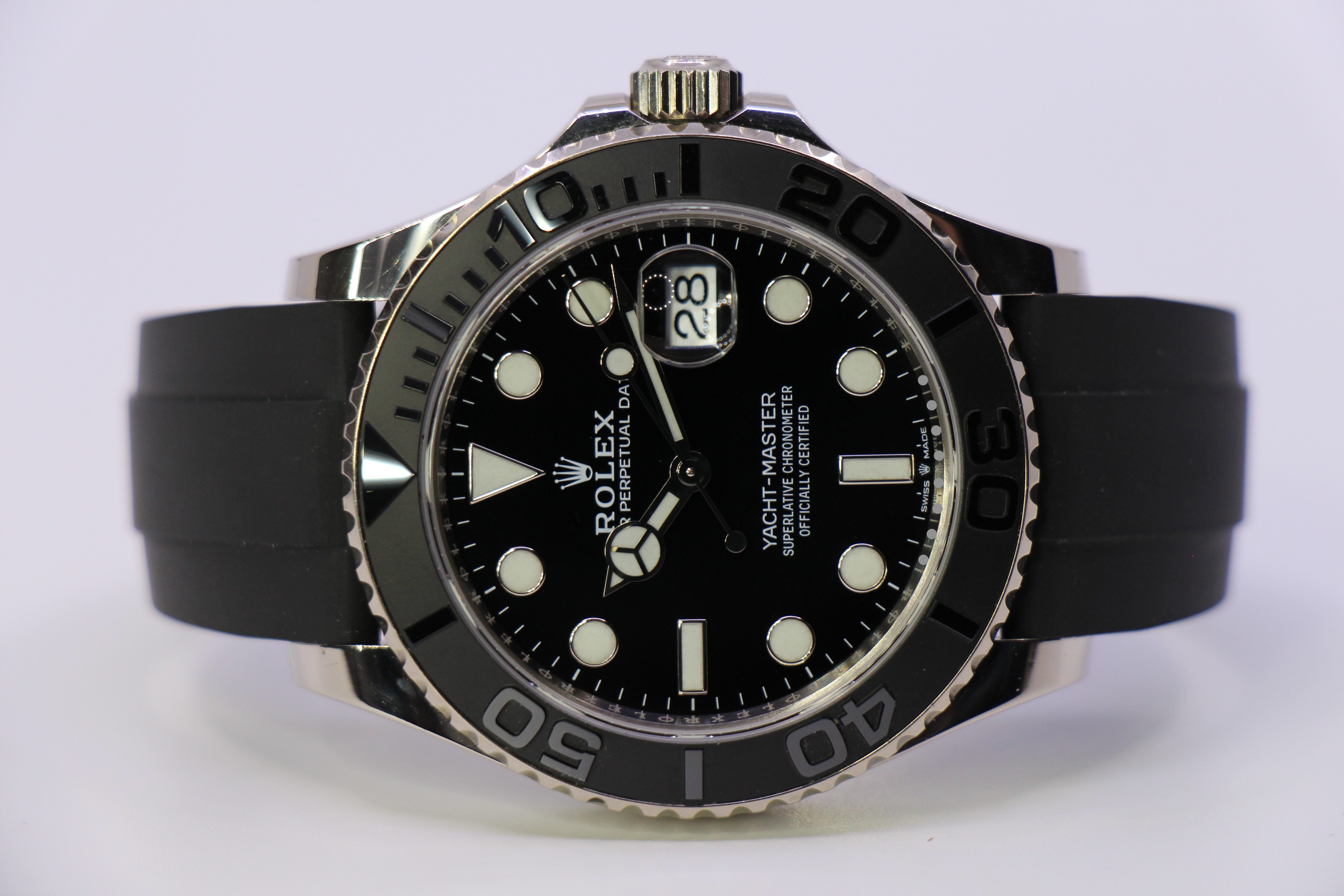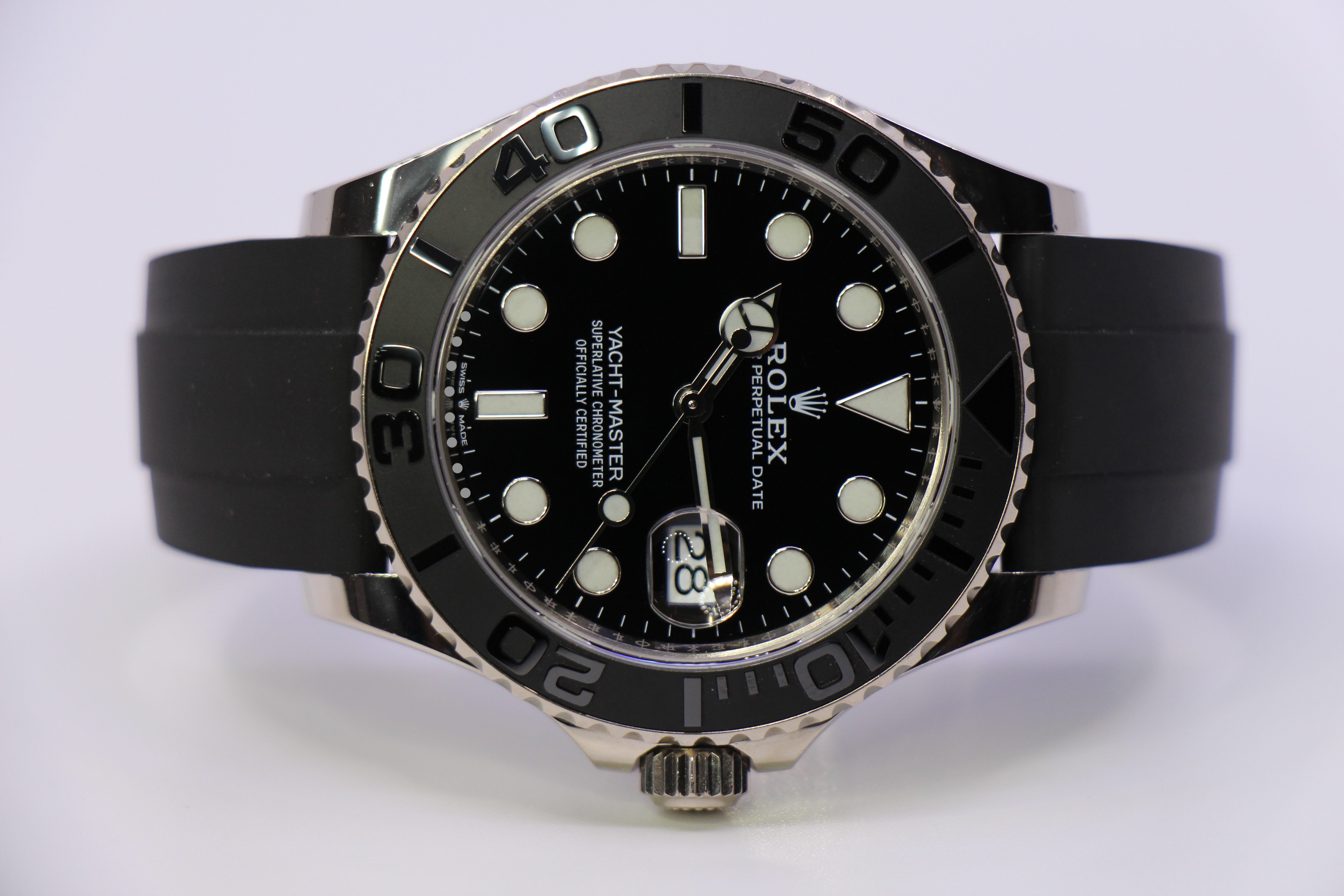 Mega flot Yacht-Master på Oysterflex rem. Uret er udført i 18 karat hvidguld, og har en fed keramisk sort lynette.